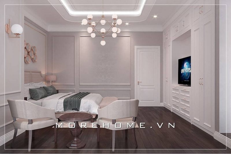 Nội thất phòng ngủ của chung cư rất sang trọng và ấn tượng, sự kết hợp giữa gam màu trắng chủ đạo đã tạo nên một cảm giác đẹp mắt, tinh tế và nhẹ nhàng hơn.