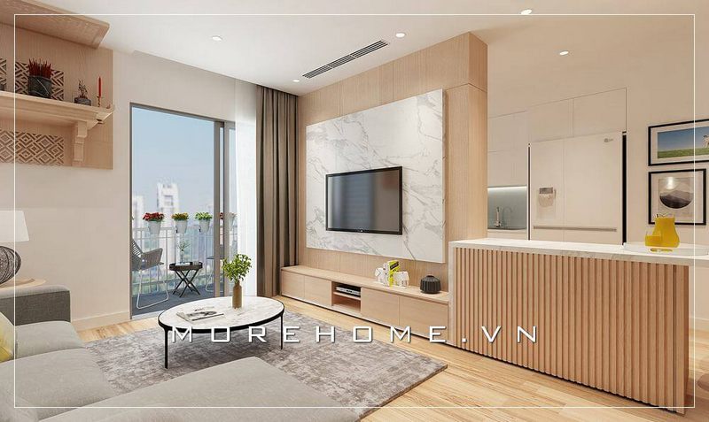 Không gian sống thông thoáng sẽ được tạo nên bởi ý tưởng bố trí phòng khách hiện đại với ban công.